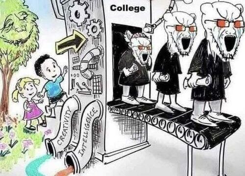 These days, college is a woke indoctrination factory pumping out our purple-haired creatures who are confused about their gender and rave about Marxism.