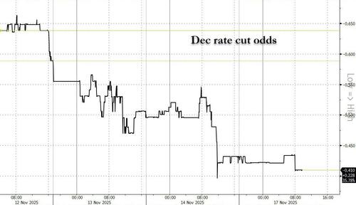The reduction in tariffs on imported foodstuffs is therefore likely to reduce inflation pressures. This will be an interesting point of consideration at the December FOMC meeting as Fed rate-setters sift through the backlog of data that had been delayed by the US government shutdown and try to guess at the path ahead for inflation, employment and growth while also weighing up threats from frothy asset markets and geopolitical risks. OIS futures are currently pricing a 41% probability of a 25bp cut at the December meeting…