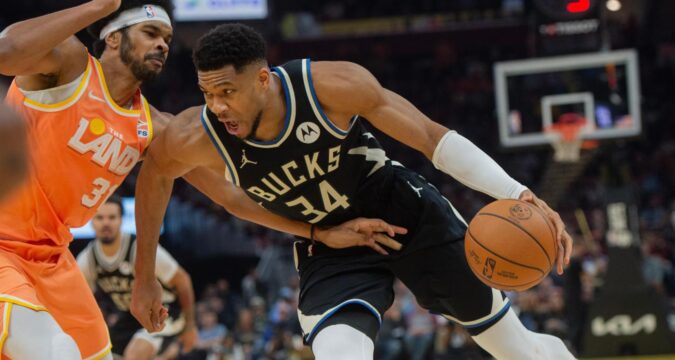 El alero All-Star de los Bucks de Milwaukee Giannis Antetokounmpo abandonó el partido contra los Cavaliers de Cleveland el lunes durante el segundo cuarto debido a una distensión en la ingle izquierda.