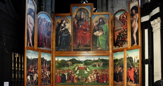 The work is monumental: 15 feet wide and 11 feet tall, it’s composed of a dozen separate panels depicting hundreds of figures – and weighs more than a ton. Its central panel shows pilgrims gathered to honor the Lamb of God (representing Jesus), while other panels depict the Annunciation, Adam and Eve, the Virgin Mary, and John the Baptist. It challenges visitors with its complex symbolism, multitude of rich details, and sheer scale – but it rewards those willing to invest the time to take it all in.