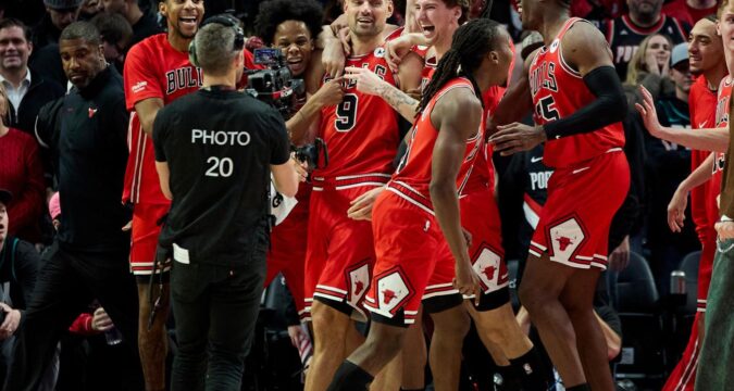 PORTLAND, Oregon, EE.UU. (AP) — Nikola Vucevic encestó un triple en el último segundo y los Bulls de Chicago resistieron un furioso intento de remontada de los Trail Blazers de Portland, a quienes superaron el miércoles por 122-121.