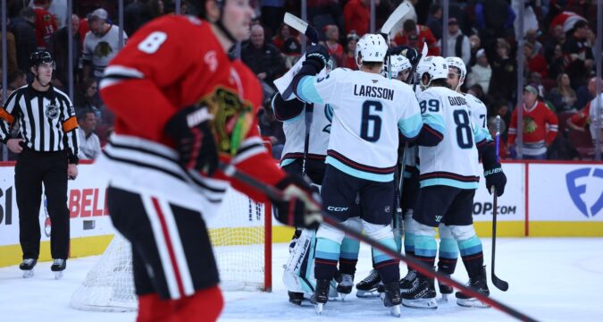Photos from the Chicago Blackhawks’ 3-2 loss to the Seattle Kraken on Nov. 20, 2025, at the United Center.