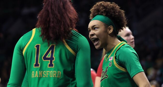 SOUTH BEND, Ind. — Hannah Hidalgo scored 22 points and hit the go-ahead jumper with 1.9 seconds left, KK Bransford scored nine of her 11 points in the fourth quarter and No. 24 Notre Dame beat No. 11 USC 61-59 on Friday.