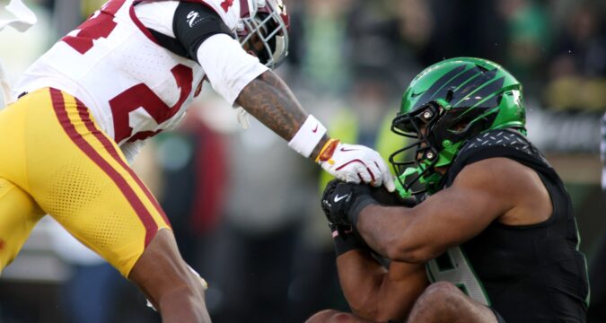 With a loss to Indiana this season, there was no margin for error for the Ducks. Lose to USC, and Oregon was likely out of the playoff — and its slim chances at a second straight Big Ten title also would vanish. But the Ducks still need to beat Washington next weekend in Seattle.