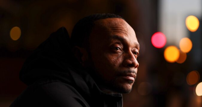 Gary Brown sits on a South Michigan Avenue bench where his father, Gary Ellis, a former CTA bus driver, liked to sit and watch activity near a bus stop. Brown said his feelings are still raw after his father died under guardianship without loved ones nearby. (Eileen T. Meslar/Chicago Tribune)