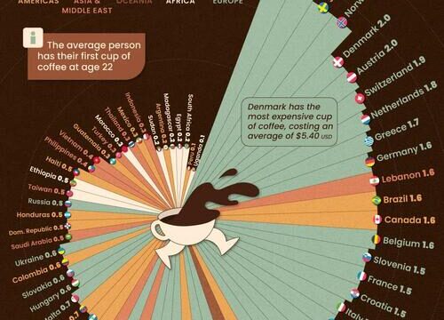 This visualization, via Visual Capitalist’s Bruno Venditti, ranks 65 countries by their daily coffee consumption per capita in 2025, showing how drinking habits differ around the world. The table below also includes data on lifetime coffee consumption, and average cup prices.