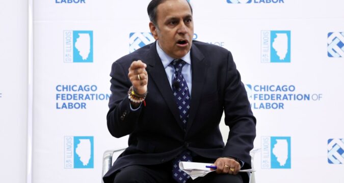 “He’s stood with our members on picket lines, he’s gone after powerful corporations that shortchange workers, and he’s championed labor at every step,” Thomas Stiede, president of the Teamsters’ joint council, said of Krishnamoorthi in a statement.