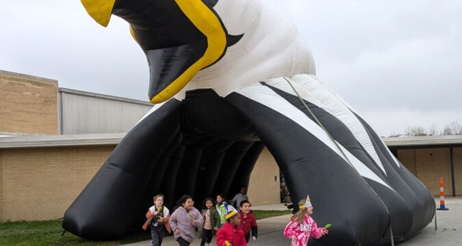 Students at Lake Station’s Bailey Elementary scampered under a giant inflatable eagle and mingled with Tommy the Turkey Friday as they celebrated a goal many thought unattainable.