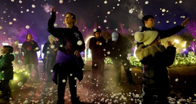 Twenty-five miles north of Chicago, the Chicago Botanic Gardens’ Lightscape was among the region’s first light shows to open this year. Some dates are already sold out — and for good reason. Even if you know the gardens well, this 1.3-mile loop ventures through the Japanese, heritage, English walled and sensory gardens, which are barely recognizable when awash in color — produced by the U.K. firm Culture Creative with trail design by Chicagoans Lee Fiskness, Travis Shupe and Christopher Wren. The experience sounds really good, too, thanks to a partnership with Sony Music, seamlessly transitioning guests between areas that lean all the way into Christmas and others that are more atmospheric.