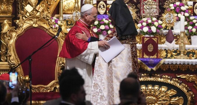 León entró en la catedral armenia envuelto en una nube de incienso mientras un coro masculino cantaba. Alabó el “valiente testimonio cristiano del pueblo armenio a lo largo de la historia, a menudo en medio de circunstancias trágicas”. Fue una referencia a la masacre de armenios por parte de los turcos otomanos durante la I Guerra Mundial.