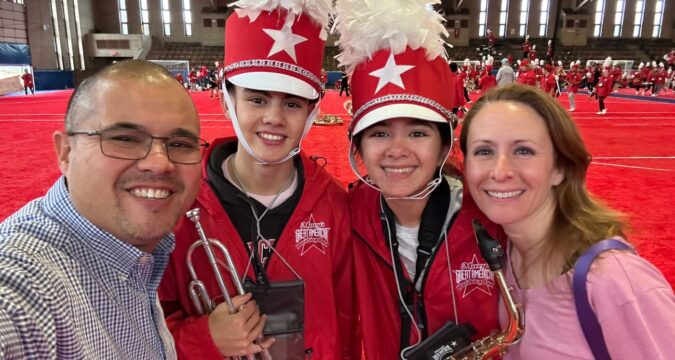 Parents David and Lydia Lesniak made the trip to see their children perform. David Lesniak is a band director at Plainfield East High School. He had previously performed in the Macy’s parade and in Pasadena at the Rose Bowl parade with the Band Directors Marching Band.