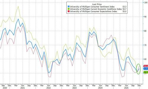 Consumer confidence data from the University of Michigan showed an impressive (and surprising) rebound in preliminary December data with the headline print rising from near record lows at 51.0 to 53.3 (well above the 52.0 exp)…