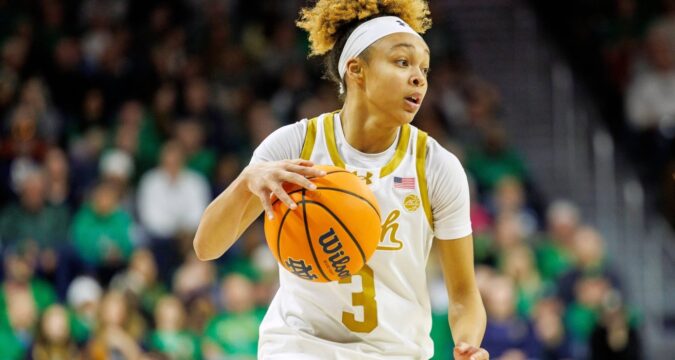 Hannah Hildago scored 28 points, including Notre Dame’s final six to keep the Fighting Irish (5-2) within range until she was ejected with a pair of technicals in the final seconds.
