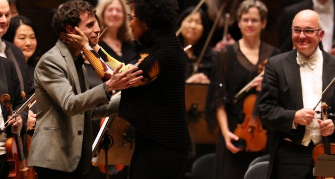 That singing quality never faltered. The second movement was placid on the surface but flowing steadily underneath — faster than usual, perhaps, but ultra-legato, like an uninterrupted current. The third movement took on the introspection of memoir, Mark Almond’s tender, watercolored solo its most intimate confession. Phrases tapered, then grew from one another.