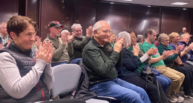 Supporters of the church’s landmarking efforts flooded the meeting, with many wearing green to signal their support. Donald R. Zaininger, 82, told the commission he had attended the church for as long as he can remember.