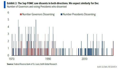 Beyond the headline move, the tone of Chair Powell’s press conference and the accompanying statement will be critical. DB’s Jim Reid says he expects Powell to “emphasize that the hurdle for further cuts in early 2026 is high, signalling a near-term pause. This guidance will be key to maintaining credibility ahead of likely softer labor market data due later in December.”