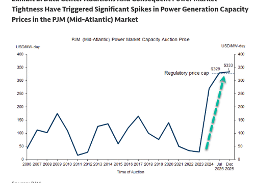 The latest power capacity auction run by PJM Interconnection, which operates the 13-state grid serving nearly one-fifth of Americans, particularly across the Mid-Atlantic, shows how sharply power generation capacity prices have exploded in recent years. Payments to generators active on the grid have surged to about $333.44 per megawatt day, up from a sub-$50 level in 2023.