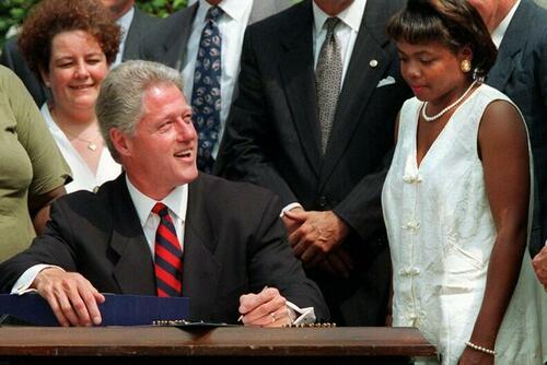 Clinton signing the Personal Responsibility and Work Opportunity Reconciliation Act of 1996.