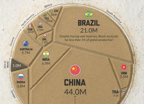 The distribution is highly uneven. China alone holds nearly half of the global total, followed by Brazil’s sizable deposits. By contrast, many advanced economies have limited reserves.