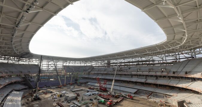 During a recent tour of the stadium construction, a blue-jeaned and hard-hatted Ryan navigated planks and temporary steel stairways to ascend to the two concourses and four seating levels, admiring the view of large cranes rumbling across the muddy future playing field below like behemoth fullbacks.