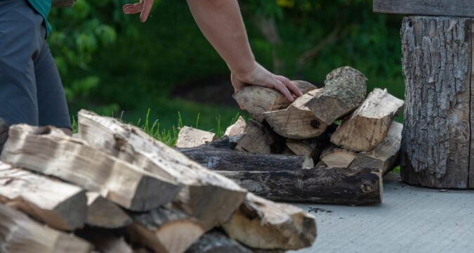 If steam bubbles and hisses out of the end grain as the firewood heats up on the fire, the wood is wet or green and needs to be seasoned longer before burning. Other signs of unseasoned wood are bark that is tightly attached and a wet, fresh-looking center with lighter and drier looking wood near the edges or ends. You can tell the wood is dry from the hollow sound it makes when you knock two pieces together. Seasoned wood is also cracked, gray in color and much lighter without the water content compared to green wood. When you split a seasoned piece of wood, it will have more of a white color on the inside with cracks running through each piece and a lot of small cracks on the inner rings. The wood will also be more brittle.