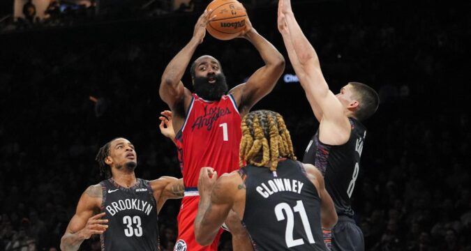 NUEVA YORK (AP) — James Harden anotó 31 puntos, Kawhi Leonard sumó 26 y los Clippers de Los Ángeles vencieron 121-105 a los Nets de Brooklyn la noche del viernes.