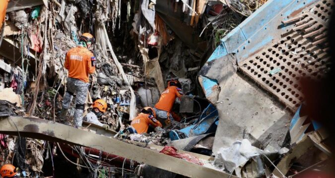 Decenas de rescatistas, incluidos policías, bomberos y personal de respuesta a desastres, han trabajado contrarreloj para encontrar más sobrevivientes en condiciones peligrosas entre los escombros de techos de hojalata retorcidos, barras de hierro y montones combustibles de basura y escombros.
