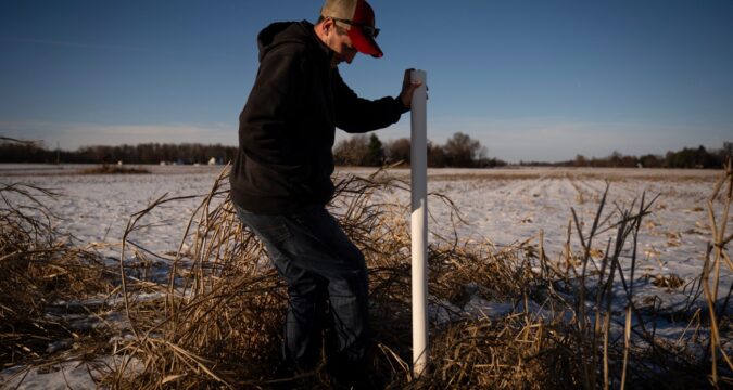 On a Tuesday afternoon in December, Jim Knollenberg steered his truck onto a 165-acre field he farms in Jasper County. He stopped near two white PVC pipes standing in an overgrown patch, placed to alert tractor drivers of the rusted well casing in the ground.