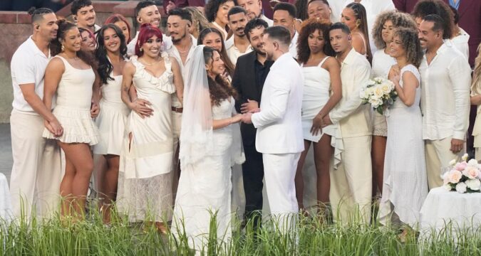 La escena de la boda, que recreó una pequeña plaza al aire libre, fue parte de la gran celebración del espectáculo de Puerto Rico.