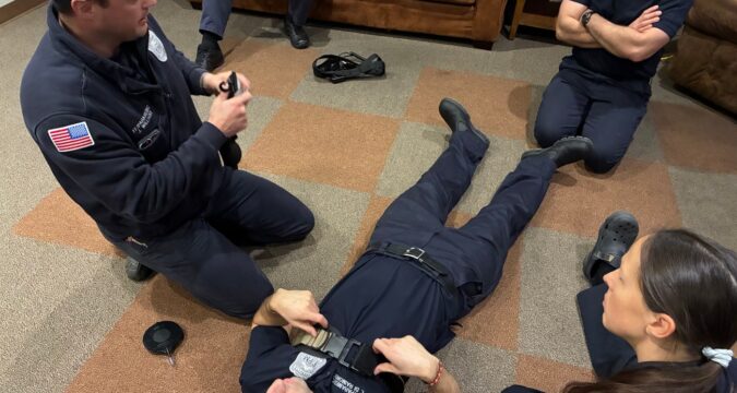 Naperville Fire Department staff learn how to use the SAM junctional tourniquet during a training session on Jan. 13, 2026. Unlike other tourniquets, the SAM junctional tourniquet can be used to stabilize the pelvic area and is far more effective in stopping bleeding than the bedsheets they had been using, officials said. (Naperville Fire Department)