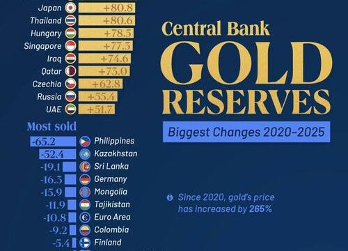 This chart, via Visual Capitalist’s Niccolo Conte, ranks the countries that made the biggest net additions and the largest reductions in gold reserves over the past five years.