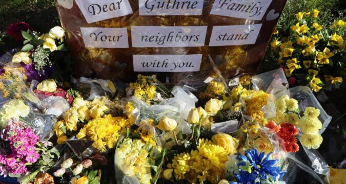 The NBC anchor, her sister Annie Guthrie and brother-in-law Tommaso Cioni walked arm-in-arm down the driveway, laid down yellow flowers and embraced each other in a tearful scene. The makeshift tribute at the edge of the property includes flowers, yellow ribbons, crosses, prayers, a sign that read “Let Nancy Come Home” and a statuette of an angel.