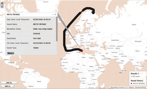 Times of Malta reports that the Russian-flagged LNG tanker Arctic Metagaz, identified as part of Russia’s shadow fleet, suffered an explosion while transiting the Mediterranean Sea between Malta and Libya.