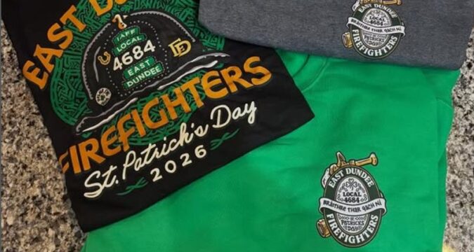 East and West Dundee firefighters have partnered with Today’s Uniforms to sell St. Patrick’s Day-themed shirts in adult sizes through the actual holiday on March 17.