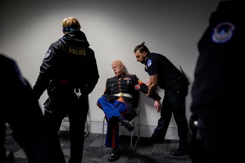 Later media reports said of the Marine, “He clashed with three officers attempting to remove him from the chamber and suffered a broken arm in the process,” per Reuters.