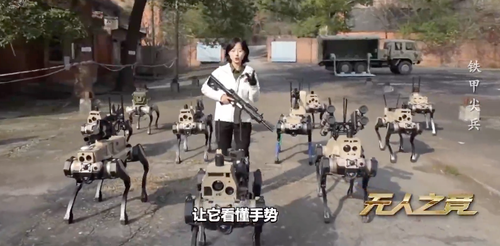 A private company in Shandong, China, demonstrated the correct use of robotic “wolves” and drones: they first provide fire suppression, then soldiers advance.