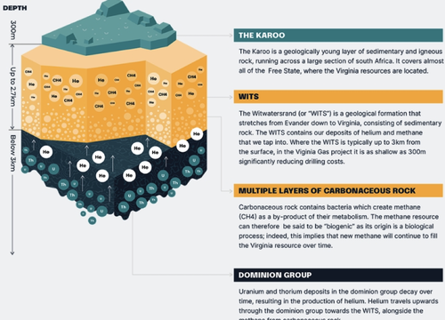 ASP Isotopes’ Virginia Gas Project stands out because of its unusually high helium concentrations. The 1,870 sq. km deposit averages 3.4% helium, with peaks reaching 12%. That compares with Qatar’s typical 0.01% and the U.S. average of 0.35%.