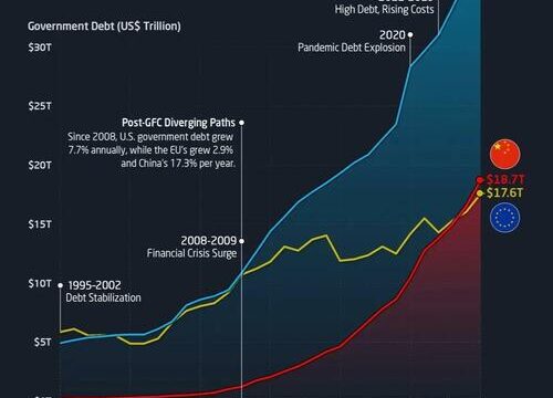 China’s government debt has surpassed the European Union’s for the first time, marking a major shift in the global debt landscape.