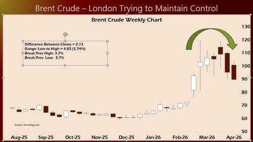 It’s the weekly chart of Brent Crude.