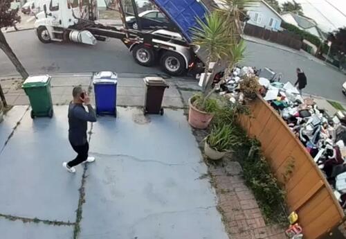 So instead of eating the cost, the driver showed up and made a statement. Ring camera footage shows him briefly talking to someone off-screen, cracking open the truck so some trash spills out, then backing up and dumping the entire load onto the front lawn.