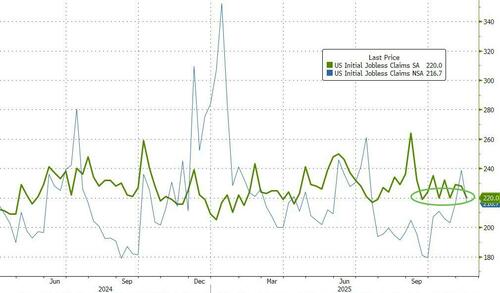 Initial jobless claims dropped back near 2025 lows (220k, below expected)…